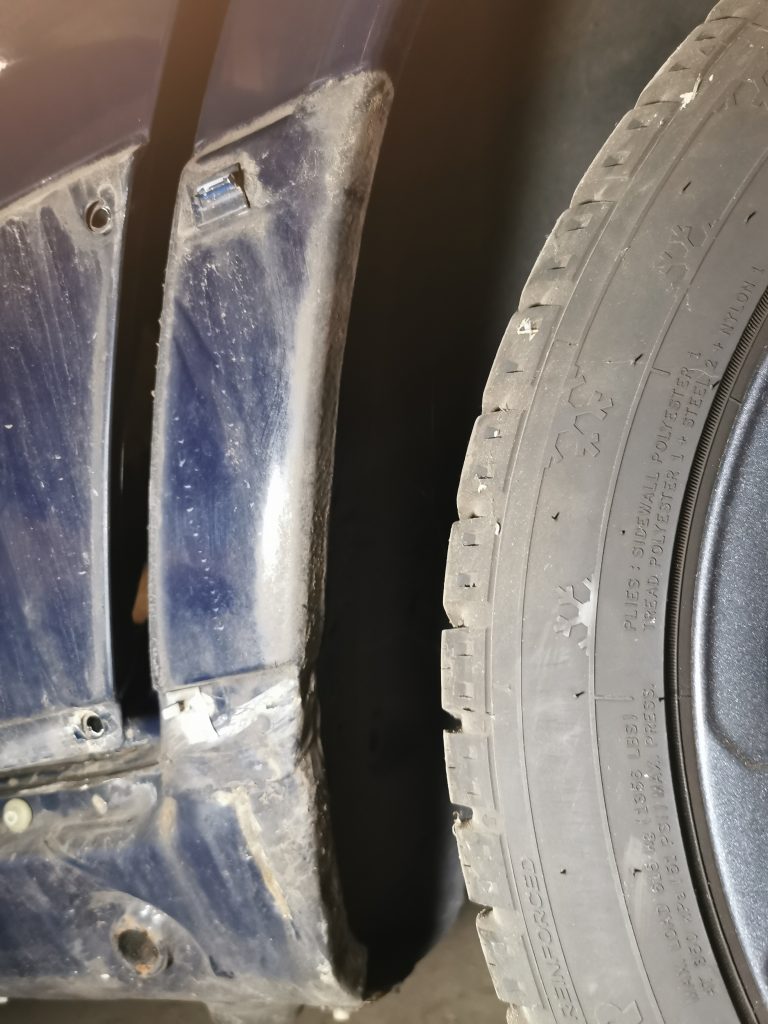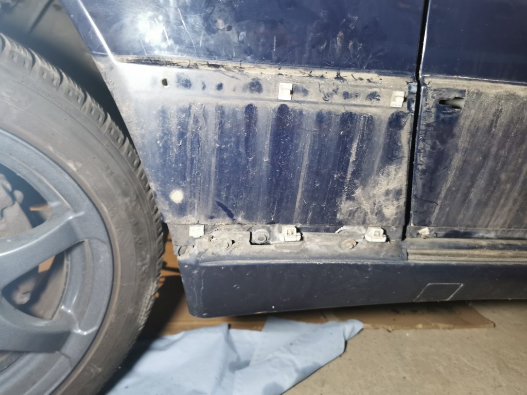Ok, die Fahrertüre ist freigelegt. Was soll ich sagen? Gammel? Nein, nichts. Nur Schmutz. Die hintere Türe wird auch freigelegt. Und hier? Auch nichts. Perfekt. Jetzt kommt der Radlauf hinten. Das kleine Ding. Ich hab gehört darunter ist wohl immer was. Beim abbauen verabschieden sich auf jeden Fall die beiden Plastikdinger. Knack und knack, ab ist der Hobel. Und? Nichts ! Kein Gammel. Hammer.
